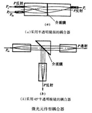 光耦合是對(duì)同一波長(zhǎng)的光功率進(jìn)行分路或合路。通過光耦合器,我們可以將兩路光信號(hào)合成到一路上,如光耦合器示意圖(a)所示,P1和P2兩路光信號(hào)經(jīng)耦合器后變成了一路輸出P3。同時(shí),光耦合器還可以對(duì)光進(jìn)行分路,如耦合器示意圖(b)所示,輸入的光信號(hào)Pin經(jīng)過介質(zhì)膜的反射和折射,分成了兩路信號(hào),當(dāng)然,這兩路信號(hào)的功率比是可以調(diào)節(jié)的。