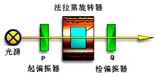 原來沒有旋光性的透明介質(zhì),如水、鉛玻璃等,放在強磁場中,可產(chǎn)生旋光性,這種現(xiàn)象稱為法拉第效應(yīng)。具體的現(xiàn)象是,把磁光介質(zhì)放到磁場中,使光線平行于磁場方向通過介質(zhì)時,入射的平面偏振光的振動方向就會發(fā)生旋轉(zhuǎn),轉(zhuǎn)移角度的大小與磁光介質(zhì)的性質(zhì)、光程和磁場強度等因素有關(guān)。 磁光隔離器也可以說是單向?qū)Ч馄,隔離器放置于激光器及光放大器前面,防止系統(tǒng)中的反射光對器件性能的影響甚至損傷。它的結(jié)構(gòu)見法拉第磁光隔離器示意圖。將磁光材料如康寧(Corning)8363號玻璃,放到磁通密度為2700高斯(0.27韋伯/米2)的磁場中,材料厚度為14cm時,旋轉(zhuǎn)角可達45°。如果首先使入口處的起偏振器和出口處的檢偏振器的光軸方向彼此相差45°。這時,達到檢偏振器的入射光,因偏振面旋轉(zhuǎn)了45°,所以能夠通過檢偏振器。而從檢偏振器反射回來的光,按原路到達起偏振器時,因振動面按同一方向又旋轉(zhuǎn)了45°。和原入射光相比,振動面已發(fā)生了90°的旋轉(zhuǎn),正好與起偏器的方向正交,所以不能通過起偏器。這就形成了光的單向傳輸系統(tǒng),故稱其為隔離器。
