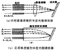 下面分別是基于干涉原理的多層介質膜濾波器原理圖和基于光柵原理的體型光柵濾波器示意圖。