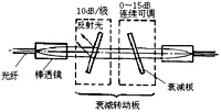 光衰減器是用于對(duì)光功率進(jìn)行衰減的器件,它主要用于光纖系統(tǒng)的指標(biāo)測(cè)量、短距離通信系統(tǒng)的信號(hào)衰減以及系統(tǒng)試驗(yàn)等場(chǎng)合。光衰減器要求重量輕、體積小、精度高、穩(wěn)定性好、使用方便等。它可以分為固定式、分級(jí)可變式、連續(xù)可調(diào)式幾種。下面分別是連續(xù)可調(diào)式衰減器的工作原理和結(jié)構(gòu)示意圖。