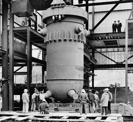 圖為美國(guó)碼頭市核電站的施工圖,那個(gè)大家伙就是壓力容器。