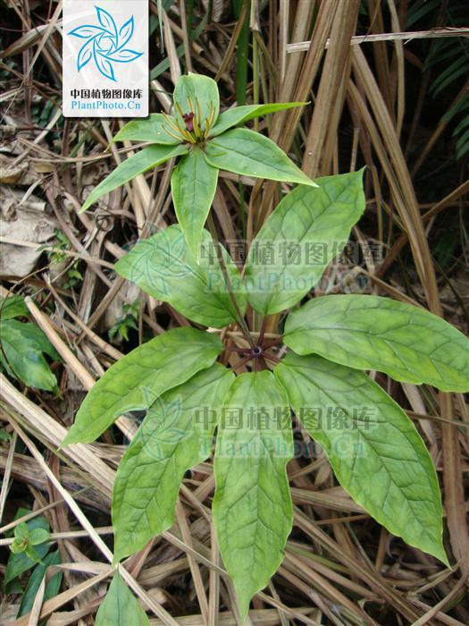 七葉一枝花其藥用部分就是他的根莖。結(jié)節(jié)狀扁圓柱形,略彎曲,長(zhǎng)5-12cm,直徑1.0-4.5cm。表面黃棕或灰棕色,外皮脫落處白色。密生層狀凸起的粗環(huán)紋,一面結(jié)節(jié)明顯,其上有橢圓形凹陷莖痕,另一面有疏生的須根或疣狀須根痕。頂端具鱗葉及莖的殘基。質(zhì)堅(jiān)實(shí),斷面平坦,白色至淺棕色,粉性或膠質(zhì)。