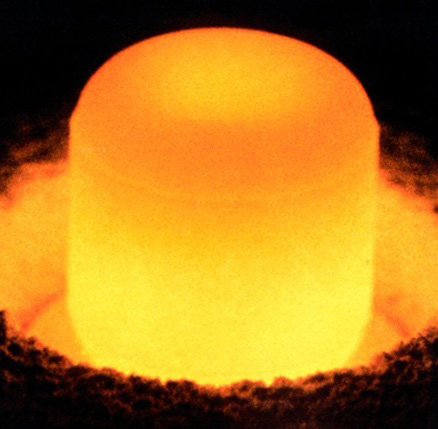 钚能自燃,這使它看起來就像一塊還在發(fā)光的余燼。