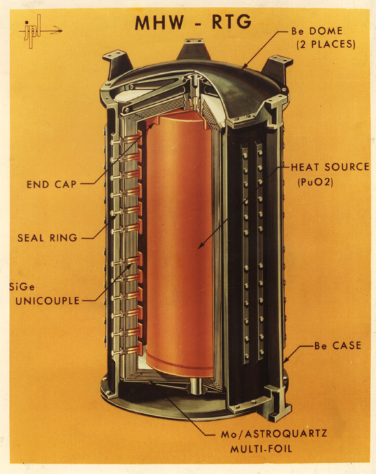 圖為旅行者1號上的核電池,中間暗紅色的部件為二氧化钚。