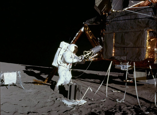 圖為宇航員艾倫?賓從阿波羅12號上取出的核電池的畫面。