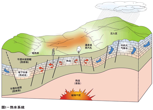 因?yàn)榈厍騼?nèi)部很深處存在放射性元素,這些元素不斷進(jìn)行著熱核反應(yīng),具有非常高的溫度,估計(jì)地球中心的溫度有6000 。這樣巨大的熱能,通過大地的熱傳導(dǎo)、火山噴發(fā)、地震、深層水循環(huán)、溫泉等途徑不斷地向地表散發(fā),這樣,便產(chǎn)生了地?zé)崮?。因此,地球被形象地形容為“大鍋爐”。