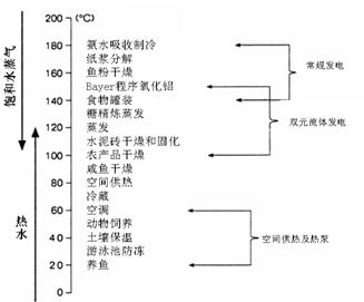 地?zé)豳Y源直接應(yīng)用流體典型溫度圖: