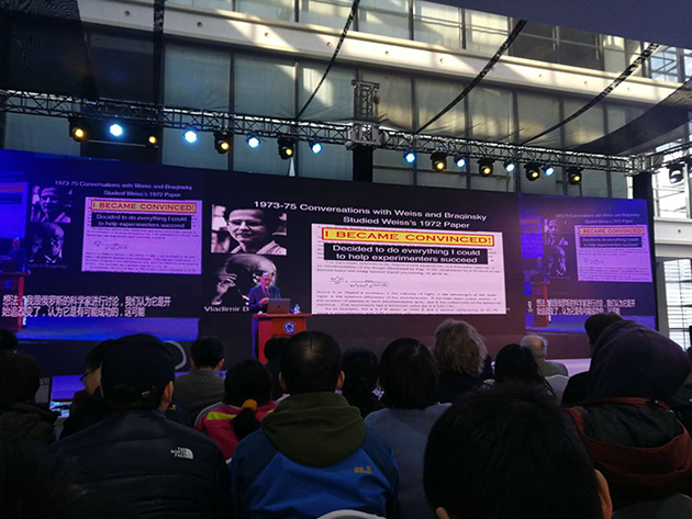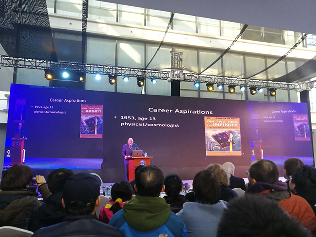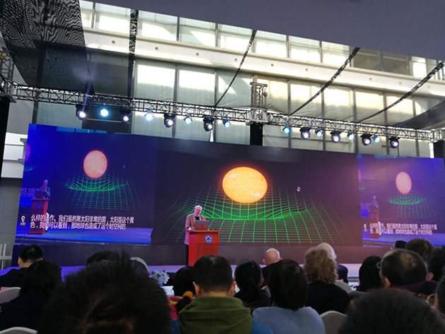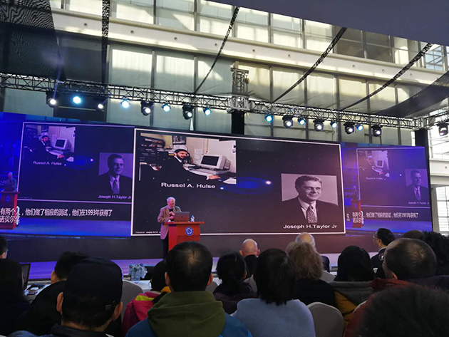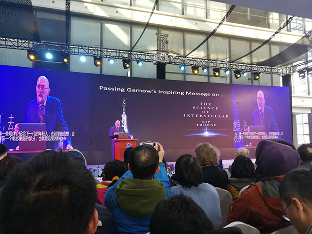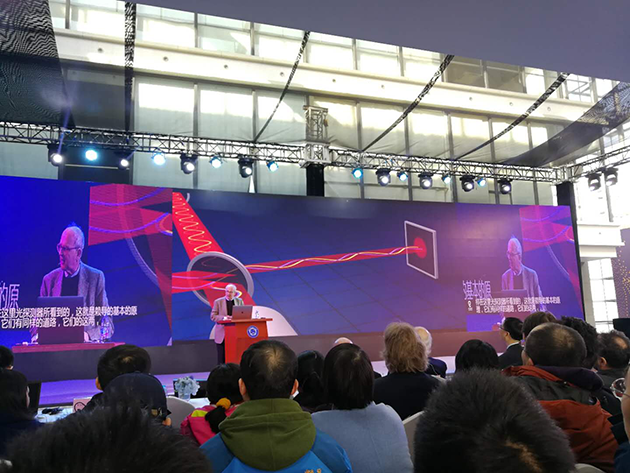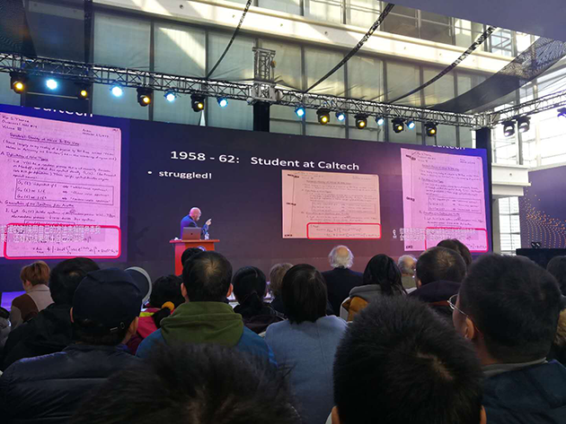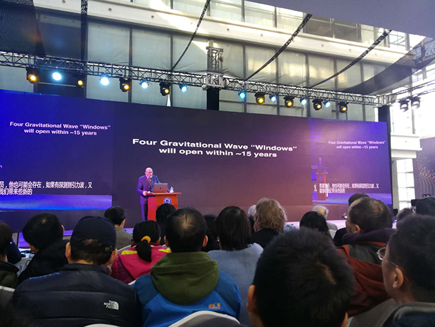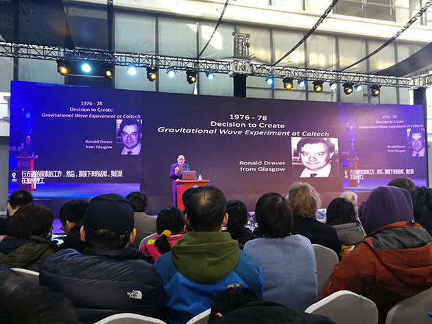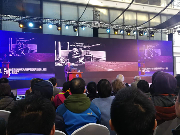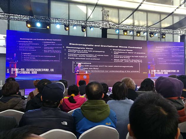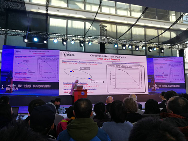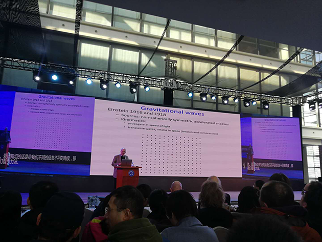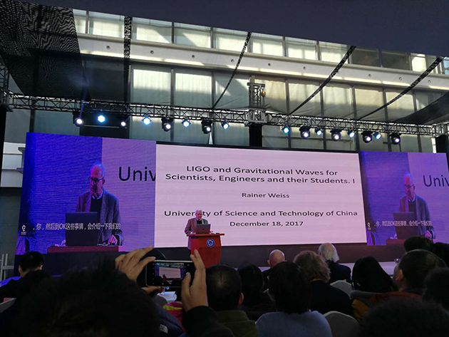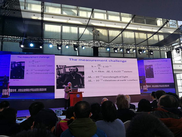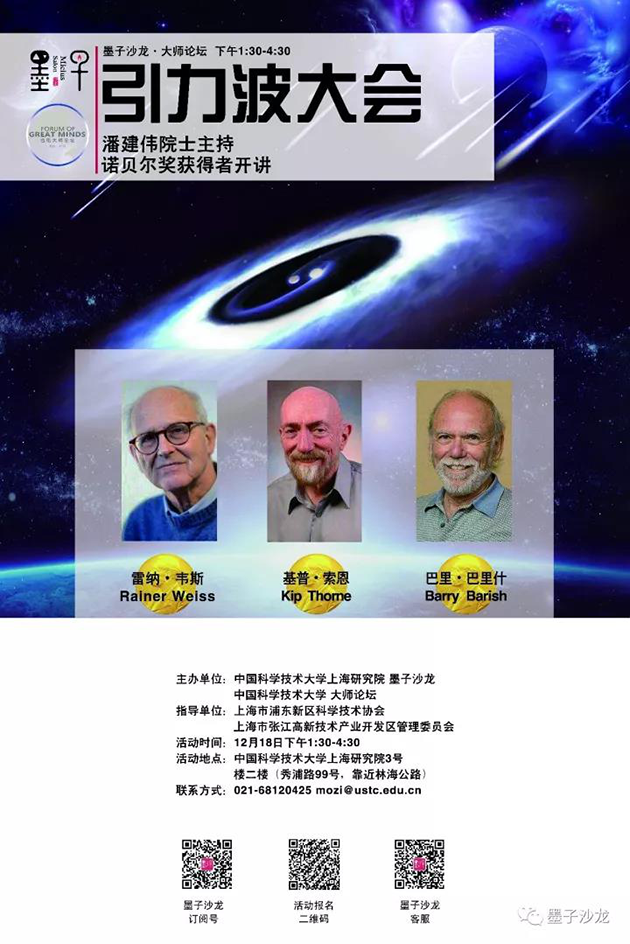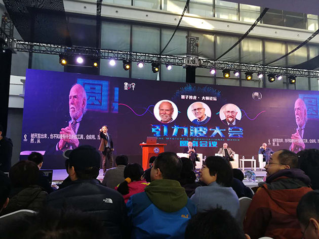 2017年12月18日,中國(guó)科學(xué)技術(shù)大學(xué)上海研究院的科普論壇“墨子沙龍”舉行了引力波大會(huì),邀請(qǐng)這三位諾貝爾獎(jiǎng)得主演講,并現(xiàn)場(chǎng)回答提問(wèn)??拼蟪?wù)副校長(zhǎng)潘建偉院士擔(dān)任主持人,臺(tái)下的觀眾充滿熱情,提問(wèn)絡(luò)繹不絕,網(wǎng)絡(luò)直播也有幾十萬(wàn)人觀看。?
