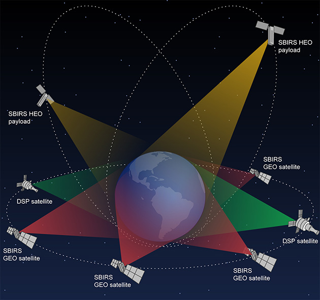 美軍公布的天基洲際導(dǎo)彈預(yù)警系統(tǒng)工作狀態(tài),實(shí)時(shí)監(jiān)控地球每一個角落(圖片來源:spacenews)?