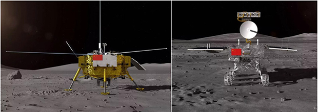 嫦娥4號(hào)著陸器(左)和月球車(右)。來源:航天科技集團(tuán)
