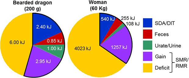 盡管這些松獅蜥吃下的每一口芹菜都會(huì)帶來(lái)熱量,但在這3天里,它們的總熱量攝入?yún)s為負(fù)數(shù)。這是因?yàn)樵?span lang="EN-US">3天時(shí)間里,蜥蜴的基礎(chǔ)代謝(維持心跳、呼吸等基本生命活動(dòng)所必需的最低能量代謝,稱基礎(chǔ)代謝(BM))最終會(huì)超過攝入芹菜的總熱量,至少損失了6千焦的熱量。????