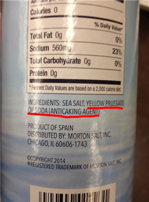 國外銷售的一款鹽,其中的抗結(jié)劑也是亞鐵氰化鉀。???