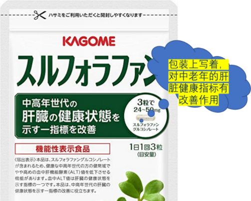 日本著名食品公司Kagome公司出售的含有蘿卜硫素的保健膠囊