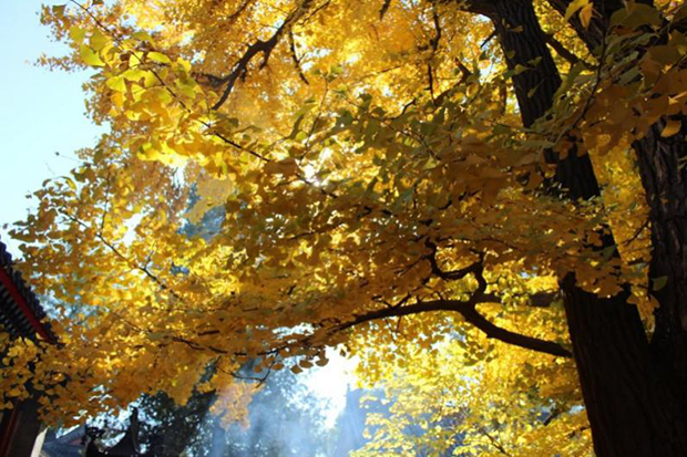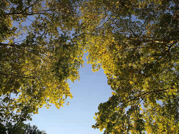 研究發(fā)現(xiàn),秋季的黃色葉樹種主要由于葉綠體中類胡蘿卜素含量變化導致的。自然狀態(tài)下,葉綠素極不穩(wěn)定,但合成速度快,生長季節(jié)成熟葉片中葉綠素和類胡蘿卜素的比率是8: 1,葉片呈現(xiàn)綠色;入秋后,氣溫降低,葉綠素合成變慢、分解加快,而類胡蘿卜素分解減緩,相對含量增加,因此葉片就顯現(xiàn)出類胡蘿卜這一色素的黃色了。