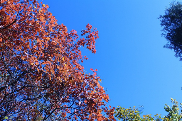 還有一個比較有趣的現(xiàn)象,中國秋色葉樹種類繁多,葉片出現(xiàn)顏色變化的時間也不同,總體呈現(xiàn)出北方的秋色葉樹種要比南方變紅變黃的更早,山上的要比山下的變紅變黃得早且顏色更深。這與中國地域遼闊,山地地形迥異,氣溫隨緯度、海拔變化較大有關。