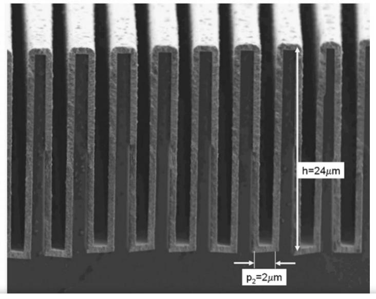 一個(gè)衍射光柵的局部放大,可以看到明顯的柵欄狀結(jié)構(gòu)。(圖片來源:參考文獻(xiàn)1)