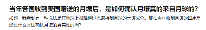 網(wǎng)上有個很有趣的問題,“當(dāng)年各國收到美國贈送的月壤后,是如何確認月壤真的來自月球的?”