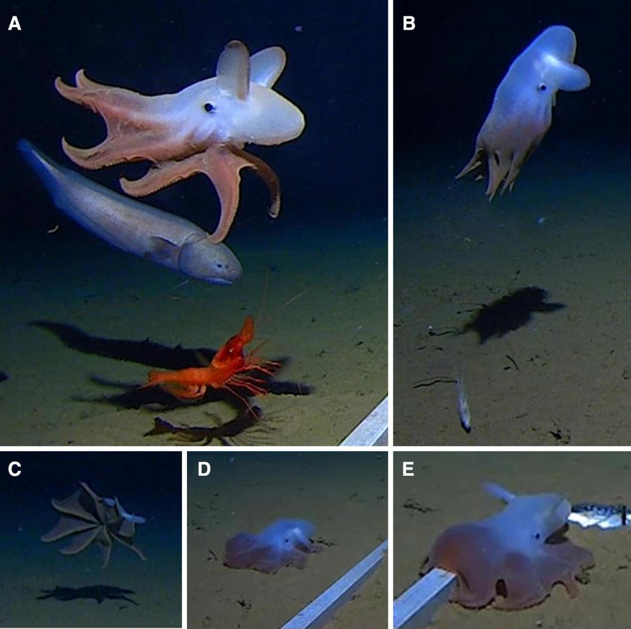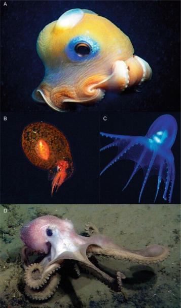 除了這些幼體生活在較淺海域,成體才下潛到深海的“半深海頭足類”,終身生存在深海的頭足類也有很多,且形態(tài)更為特別。
