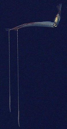 然而,鞭烏賊的觸腕上缺乏橫肌,因此不能夠迅速伸縮。但畢竟在深海中,其他的魚類也很少能游得很快,這樣的觸腕也算夠用。但更多的時(shí)候,鞭烏賊會(huì)懸停在水層中,將自己長(zhǎng)長(zhǎng)的觸腕當(dāng)作“釣竿”,守株待兔吸引眼神不好的小魚,并用觸腕上的吸盤抓而食之。