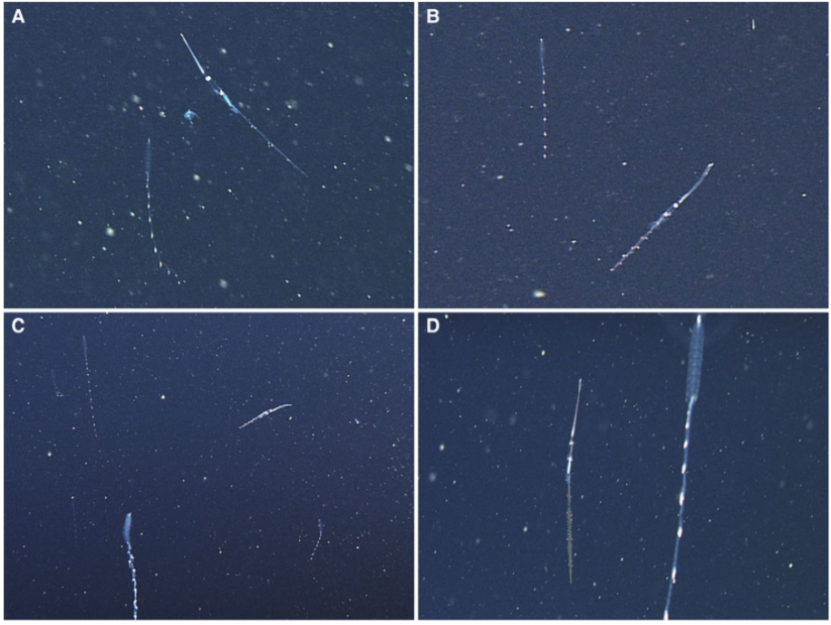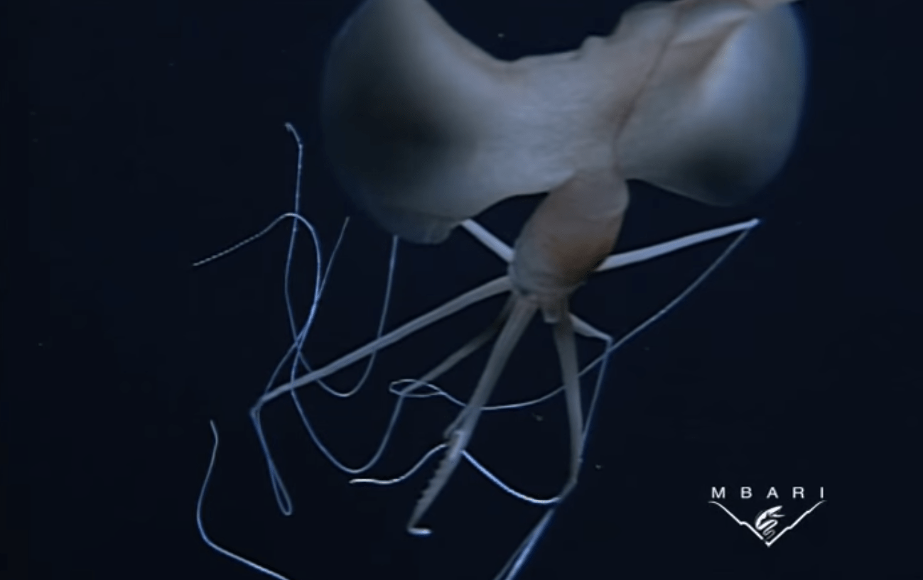 幽靈蛸長(zhǎng)長(zhǎng)的第二附肢(細(xì)絲狀觸腕)和內(nèi)部密布的須。圖片來源:CR2 - Weebly