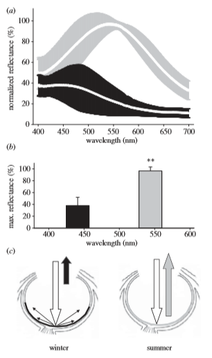 冬季射入馴鹿眼中的光線更易發(fā)生散射且以短波長為主(圖片來源:參考文獻6)