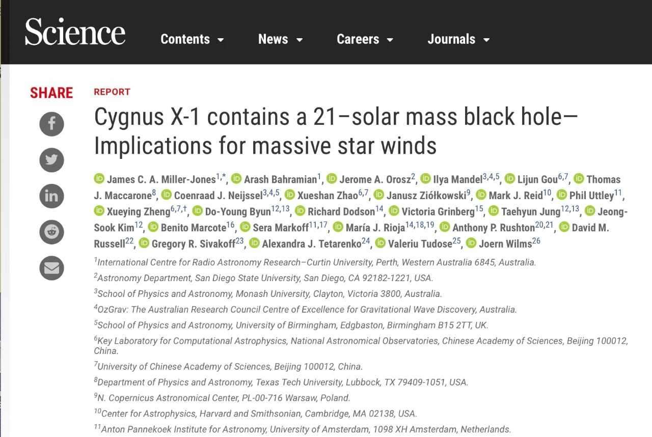 北京時間2月19日凌晨,三篇論文分別在國際頂級學(xué)術(shù)期刊《科學(xué)》(Science)和《天體物理學(xué)報》(Astrophysical Journal)上發(fā)表,來自于澳大利亞、美國和中國的科學(xué)家們聯(lián)合發(fā)布了對黑洞X射線雙星天鵝座X1(Cygnus X-1)的最新研究結(jié)果。