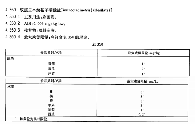 百可得的主要成分是「雙胍三辛烷基苯磺酸鹽」,又稱為雙胍辛烷苯基磺酸鹽(iminoctadine tris albesilate),它的每日容許攝入量(ADI)是0.009mg/kg 體重,相當(dāng)于一個60公斤體重的成年人每天攝入0.54毫克都是安全的。