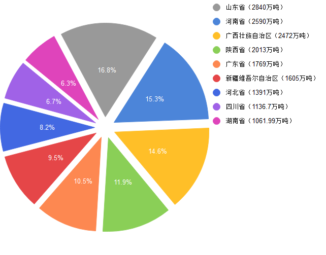 除了最常見(jiàn)的柑桔和蘋(píng)果,還有諸多優(yōu)勢(shì)品種。比如葡萄這種溫帶水果,在新疆的產(chǎn)量最高,著名的吐魯番葡萄是不是一想起就會(huì)流口水呢?顯著的晝夜溫差造就了這里瓜果的甜美。比如柿子,北方以陜西、河北、河南為主產(chǎn)區(qū),南方以福建、廣西為主產(chǎn)區(qū),廣西更是位列全國(guó)各省區(qū)產(chǎn)量之首,是第二名的兩倍有余。
