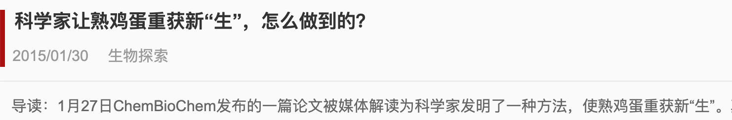 不過(guò)在2015年,倒是有一個(gè)科學(xué)新聞,說(shuō)一個(gè)科學(xué)家“復(fù)生”了熟雞蛋,不僅發(fā)了正兒八經(jīng)的學(xué)術(shù)論文,還得了當(dāng)年搞笑諾貝爾獎(jiǎng)……這是咋回事?