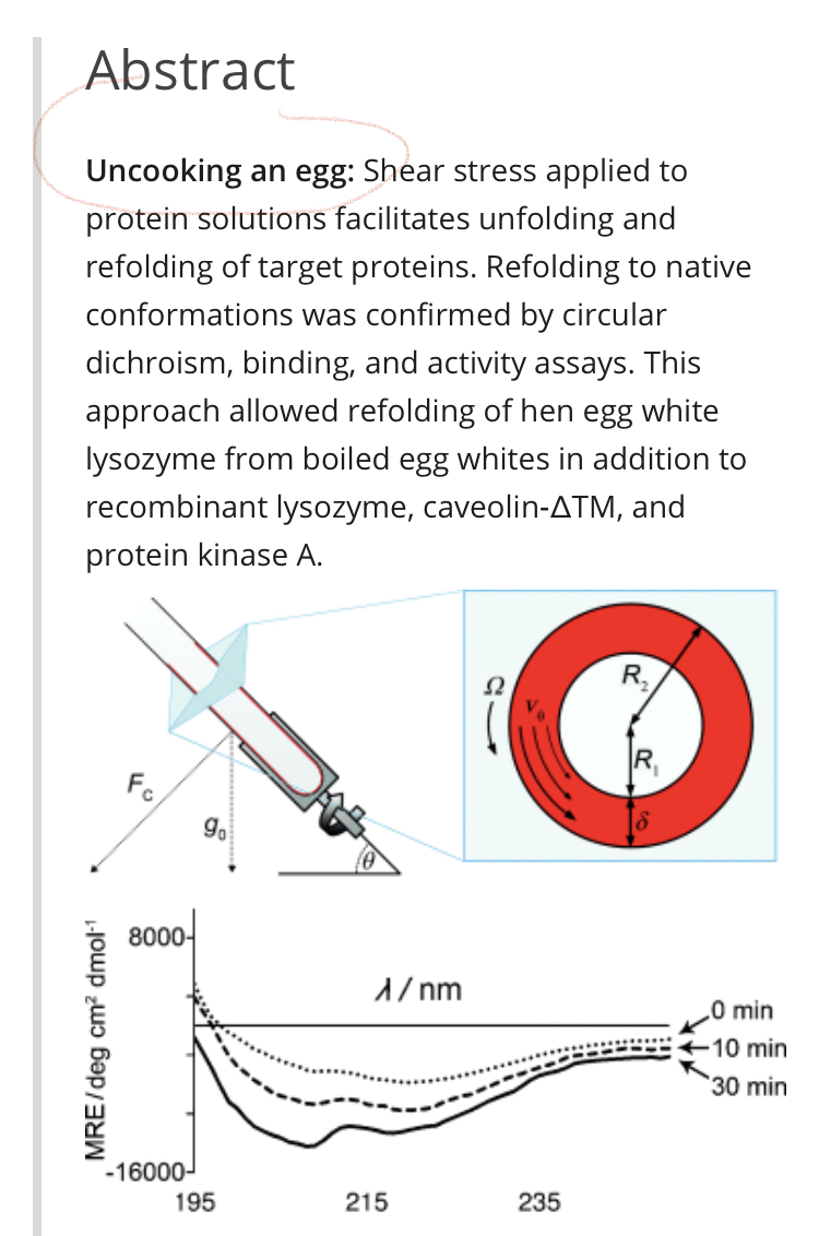 原論文標(biāo)題翻譯過(guò)來(lái)跟雞蛋一點(diǎn)關(guān)系都沒(méi)有:剪切應(yīng)力介導(dǎo)的聚集體和包涵體的重折疊。新聞引用論文的時(shí)候如果直接用了這科學(xué)標(biāo)題,八成都沒(méi)人看了。