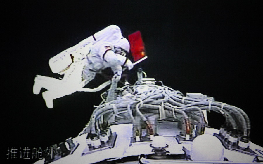 翟志剛出艙進(jìn)行太空行走(圖片來源見水?。?/p>