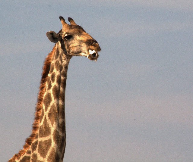 至于為什么長頸鹿有時(shí)候沒咀嚼骨頭,還把它叼在嘴里?