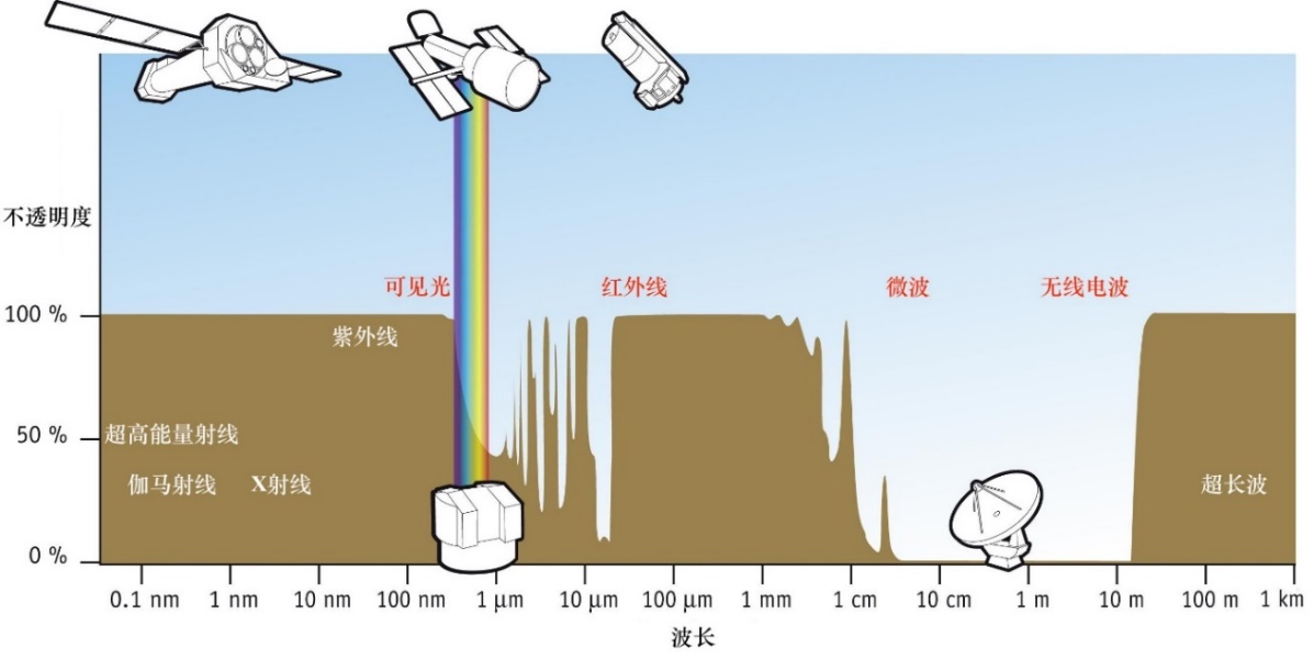 然而,地球大氣層、磁場、人類活動等因素,卻使得地球成了一個典型的“信息繭房”。在廣闊的電磁波頻段中,只有極小一部分能順利抵達地球表面并被望遠(yuǎn)鏡觀測到,其他的則幾乎都被屏蔽在外。