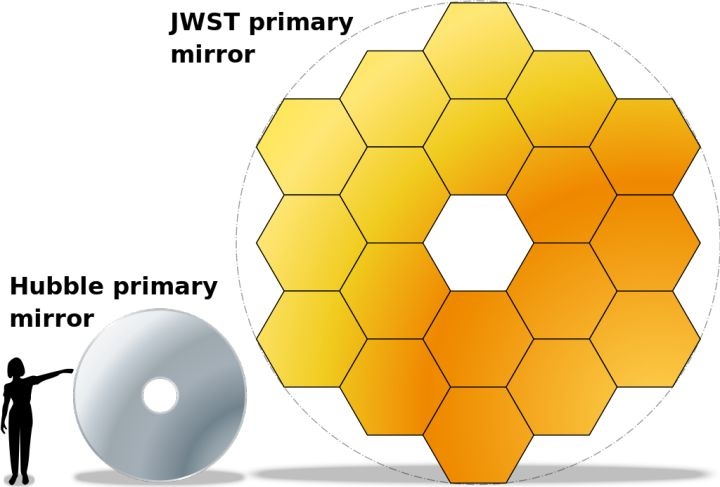 人類、哈勃望遠(yuǎn)鏡主鏡和詹姆斯 韋伯主鏡的大小對比