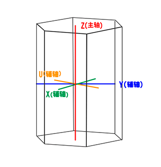 和我們?cè)诓┪镳^見(jiàn)到的水晶類(lèi)似,冰晶也屬于六方晶系,同樣具有四個(gè)結(jié)晶軸,分為三個(gè)輔晶軸和一個(gè)主晶軸,其中三個(gè)輔晶軸互相以60 的角度相交形成一個(gè)基面上,主軸垂直于此基面。下面這張圖可以幫助大家理解冰晶的結(jié)構(gòu):