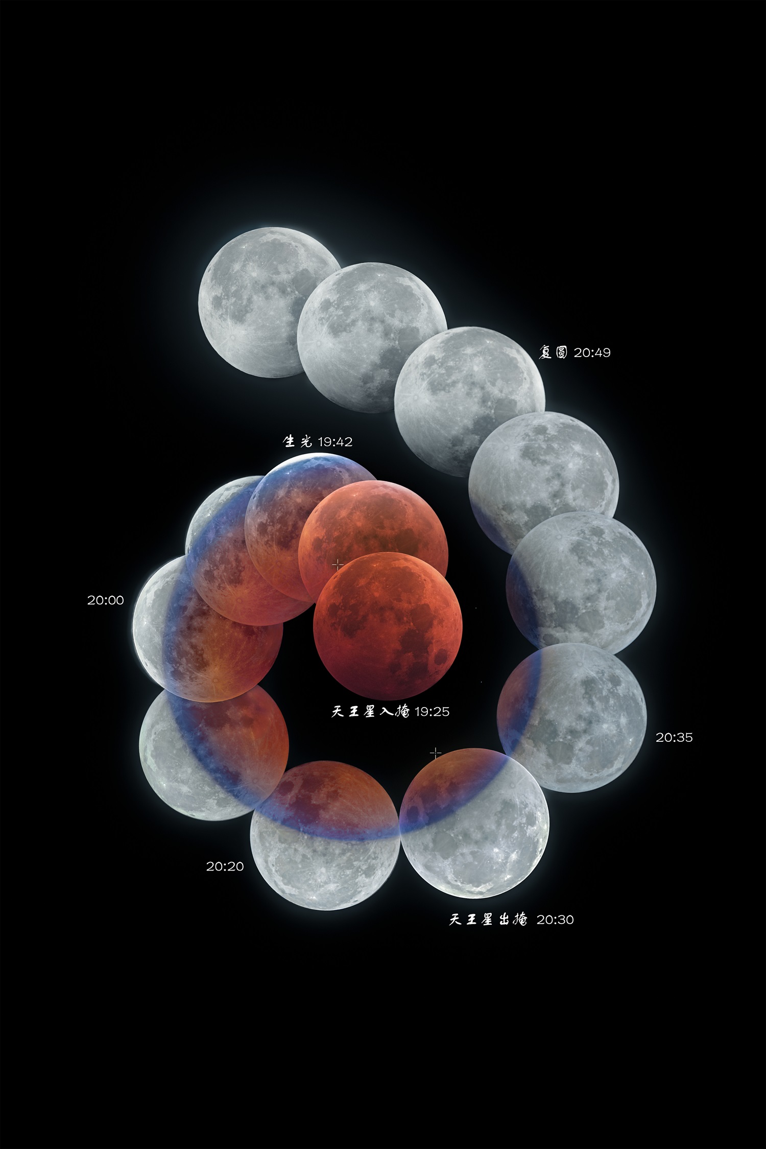 2024年科普視頻圖片大賽碩博組-科學(xué)圖片類一等獎(jiǎng)。當(dāng)月全食巧遇月掩天王星,會(huì)碰撞出怎樣的火花?在月全食中,月球直線穿過地球本影,但如果把時(shí)間以角度的形...